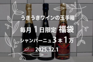 2025年12月1日楽天食フェスで購入した、うきうきワインの玉手箱の福袋の中身を公開します。1年間、毎月1日シャンパーニュ袋を買い続ける企画の第11回目。また!!お前か!