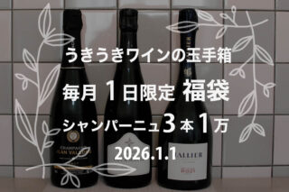 ワイン福袋 「最終回」うきうきワインの毎月1日福袋シャンパーニュ3本1万の中身は「最後もお前か」 2026年1月1日元旦に購入した、うきうきワインの玉手箱の福袋の中身を公開します。1年間、毎月1日シャンパーニュ袋を買い続ける企画のラスト。 2026.02.23 うきうきワインの玉手箱ワイン福袋