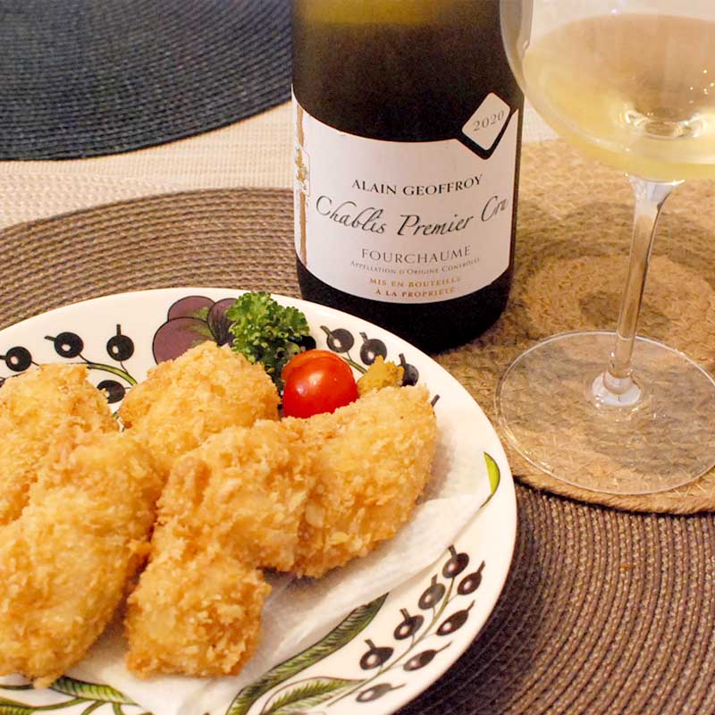 合わせた料理は、和食系居酒屋からテイクアウトしてきた、スズキのフライ(¥1,200)です。あっさりとした白身魚のフライが、スッキリしつつも厚みのあるシャブリとお互いに引きたて合って、とても美味しいです😋
